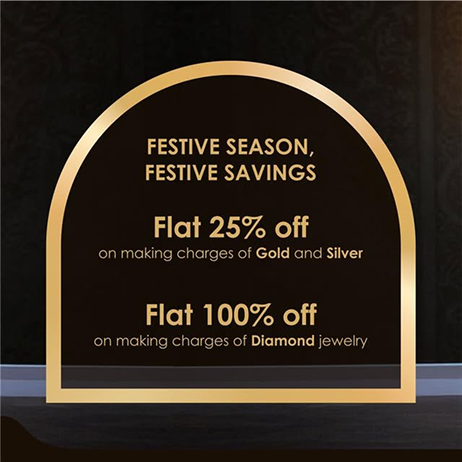 This festive season, adorn yourself and your loved ones with the timeless elegance of fine jewelry, without the worry of making charges. We’re thrilled to offer a special promotion: a flat 25% off on the making of our gold and silver creations, and an exceptional flat 100% off on the making of our stunning diamond jewelry. Make this festive season truly unforgettable with a gift that shines as bright as your celebrations. Discover the perfect piece to mark the occasion.